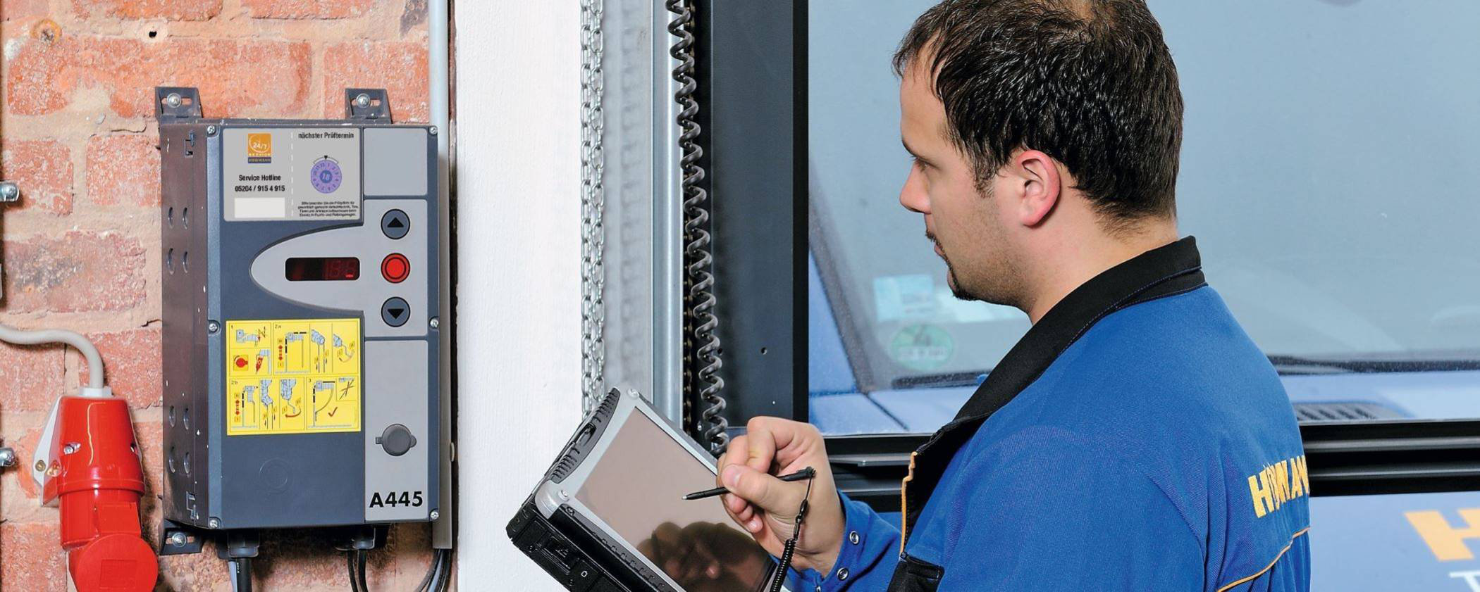 Auf Wunsch übernehmen wir für Sie – herstellerunabhängig – die zuverlässige Wartung Ihrer Tor-, Tür- und Verladesysteme, um vorbeugend kostenintensive Störungen oder Ausfälle im Betrieb zu vermeiden und langfristig die Lebenszykluskosten zu senken. Zusätzlich sorgen wir termingerecht für die Durchführung der gesetzlich vorgeschriebenen jährlichen UVV-Prüfung nach ASR A 1. 7, welche ebenfalls das Anbringen einer Prüfplakette sowie das Ausstellen eines Prüfberichtes für Ihr Prüfbuch beinhaltet.
